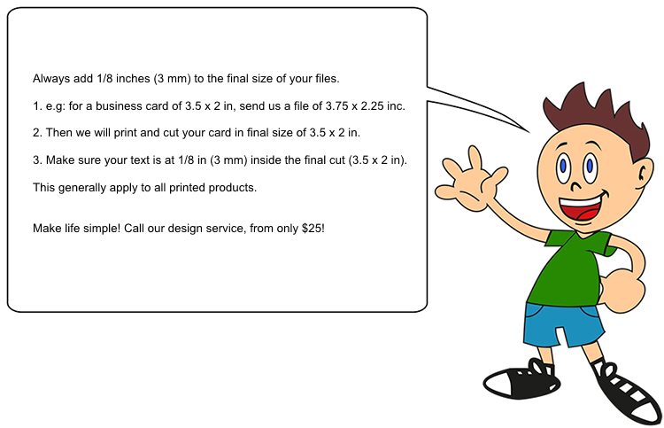 ( e.g.: a business card of 2 x 3.5 inches becomes a design of 2.25 x 3.75 inches )